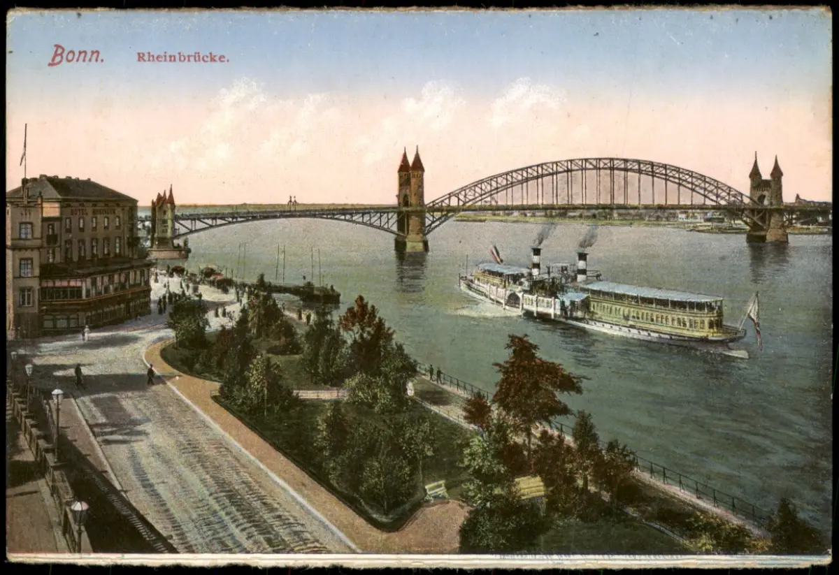 Ansichtskarte Bonn Rhein Schiff passiert Rheinbrücke 1910