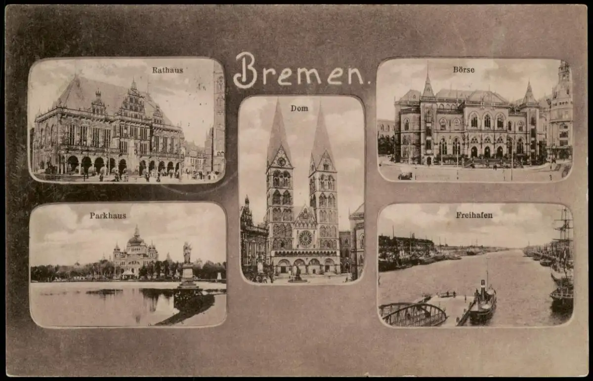 Ansichtskarte Bremen Rathaus Börse Freihafen 1907