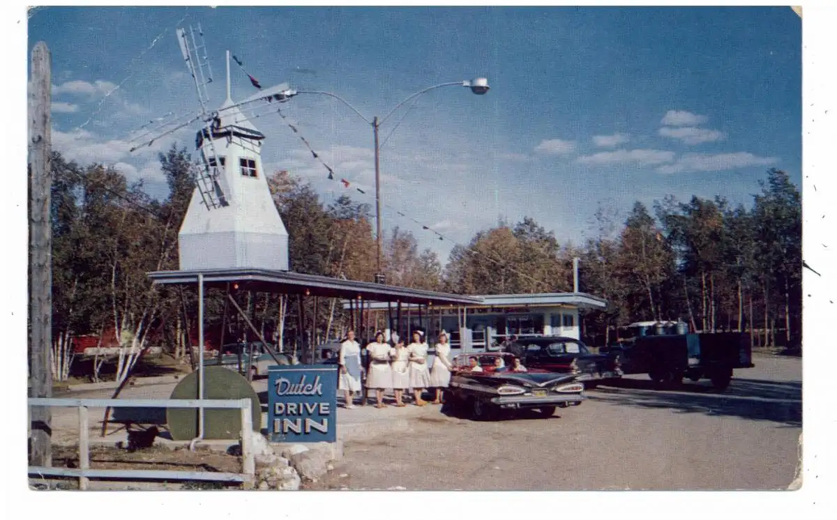Titel: CANADA - MANITOBA - THE PAS, THE DUTCH DRIVE INN, US-Cars, Mil / Molen, 1961