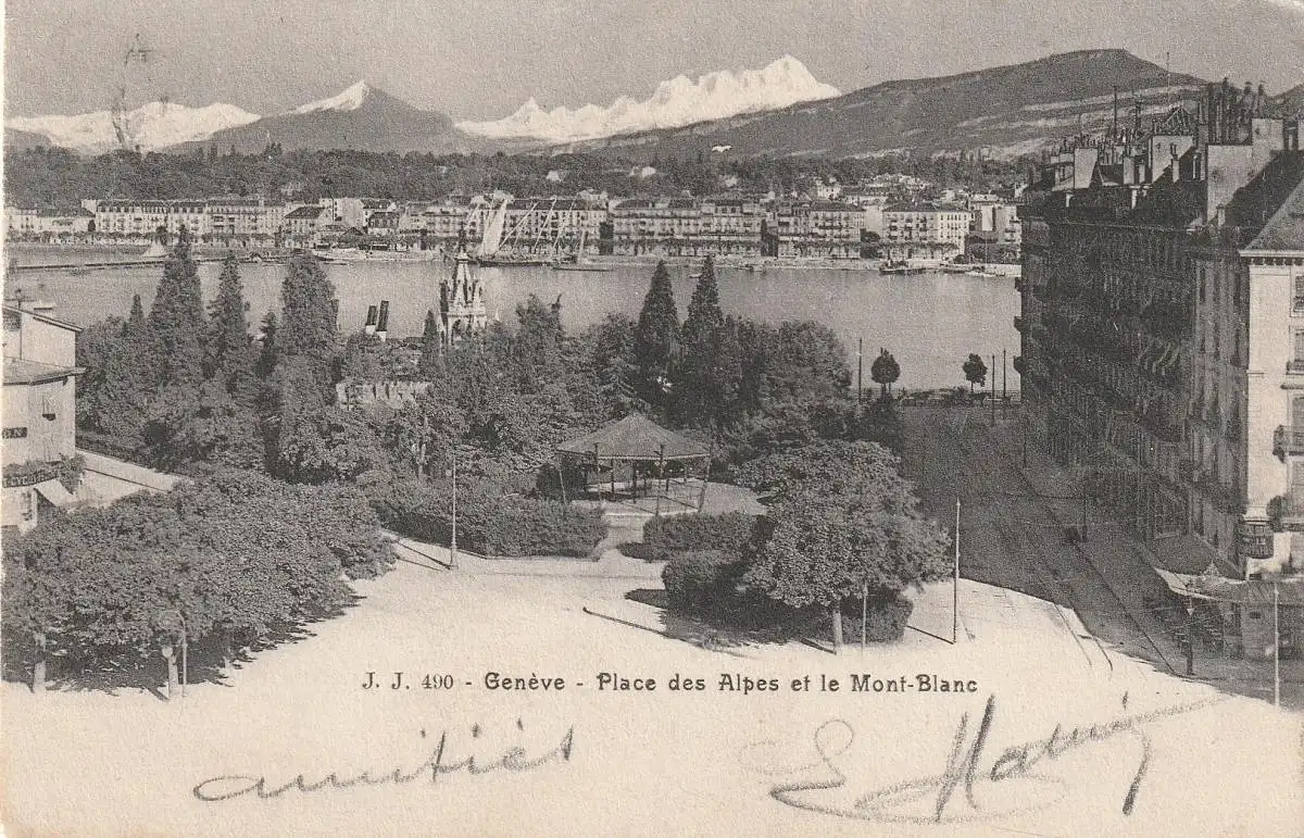 [Ansichtskarte] CH 1200 GENF / GENEVE GE, Place des Alpes et le Mont - Blanc, 1904.