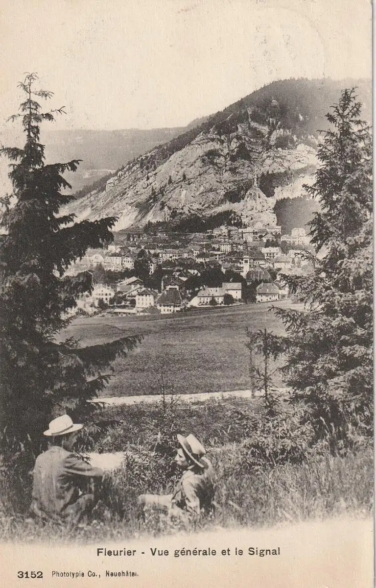[Ansichtskarte] CH 2114 VAL DE TRAVERS - FLEURIER NE, Vue generale et le Signal, 1907.