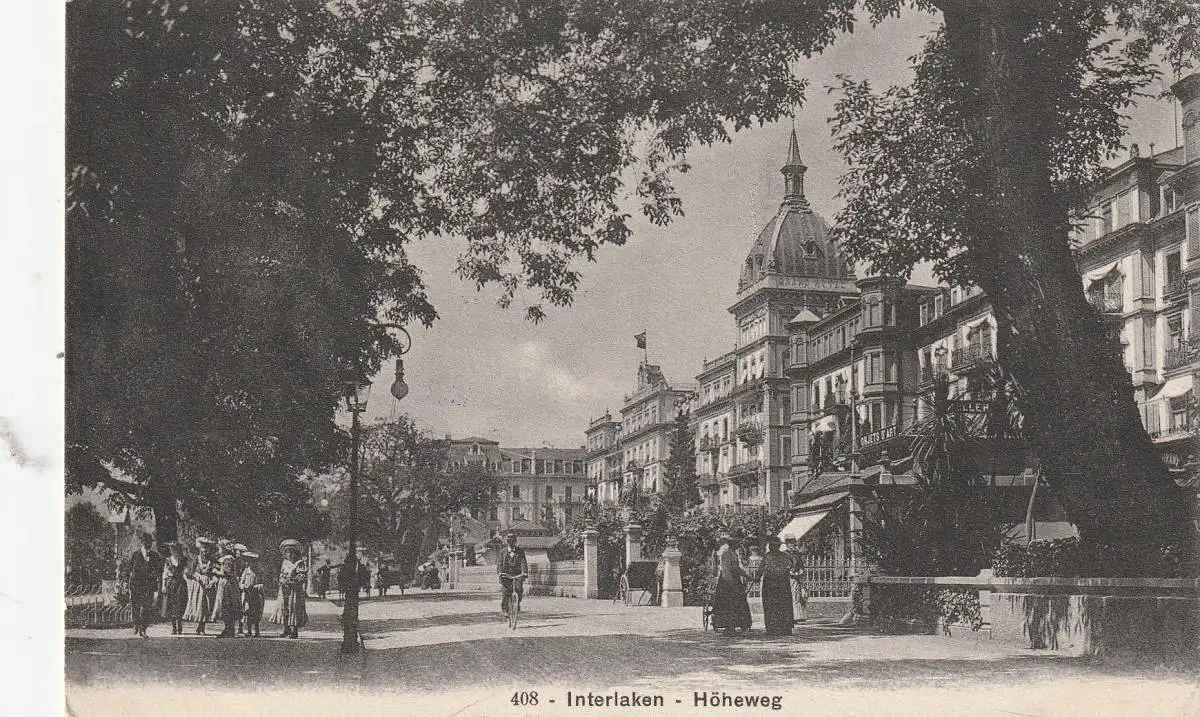 [Ansichtskarte] CH 3800 INTERLAKEN BE, Höheweg, animierte Szene, 1913, Verlag Brienz.