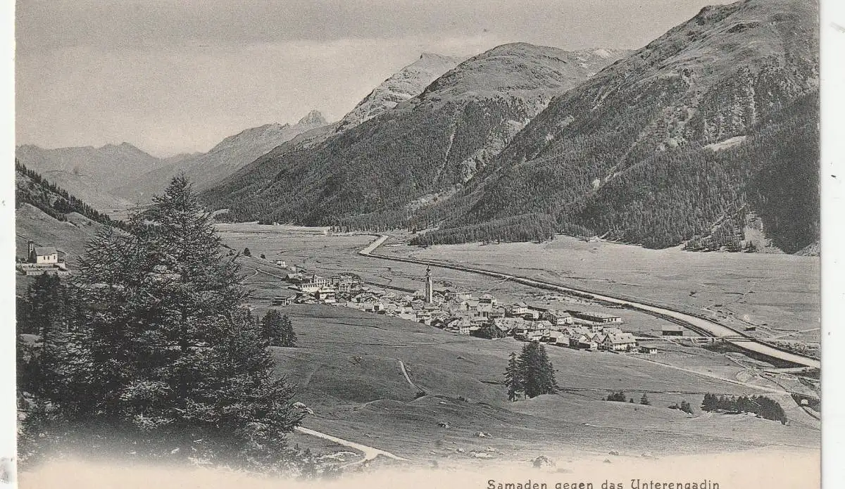 Titel: CH 7503 SAMADEN / SAMEDAN GR, Blick über das Tal