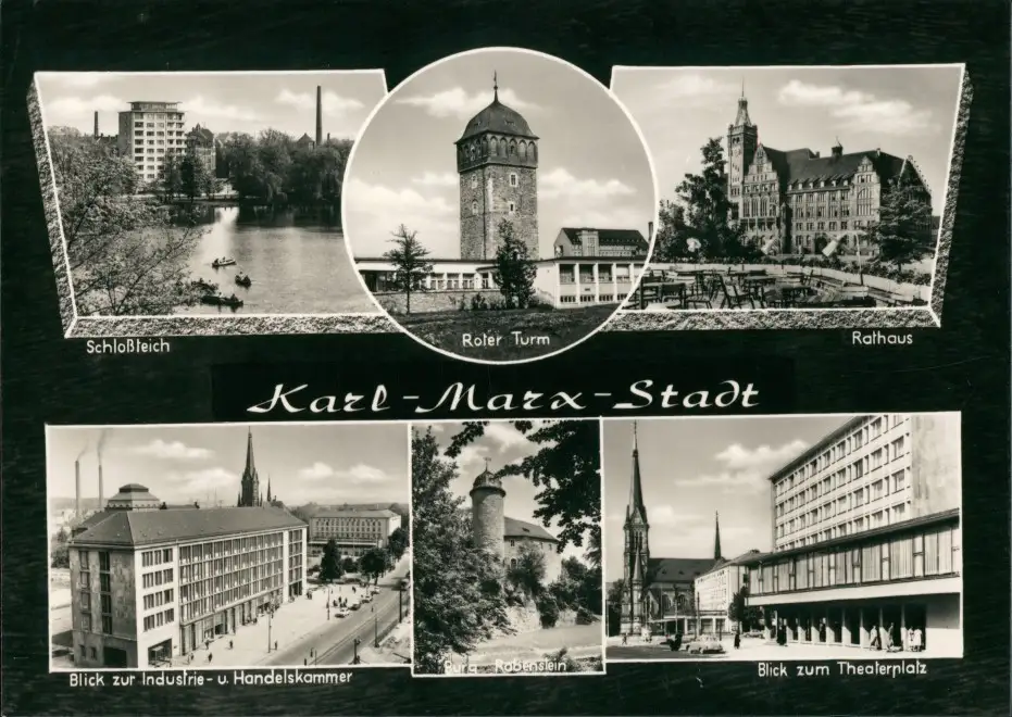 Ansichtskarte Chemnitz Roter Turm, Teich, Handelskammer 1975