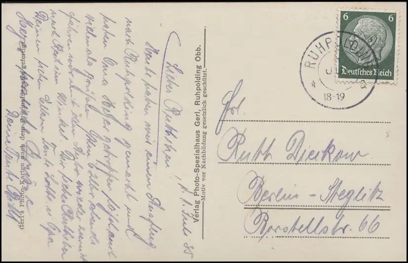 Ansichtskarte: Der Förchen-See, EF 6 Pf RUHPOLDING 1.7.35