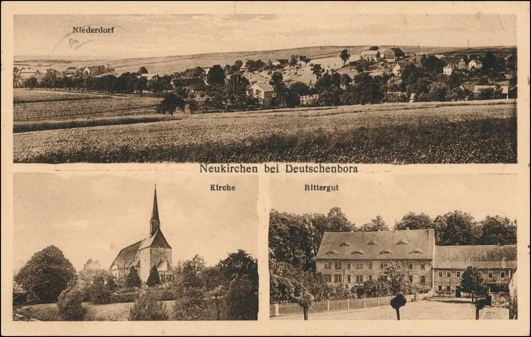 Ansichtskarte Deutschenbora-Nossen Neukirchen Rittergut Kirche 1936
