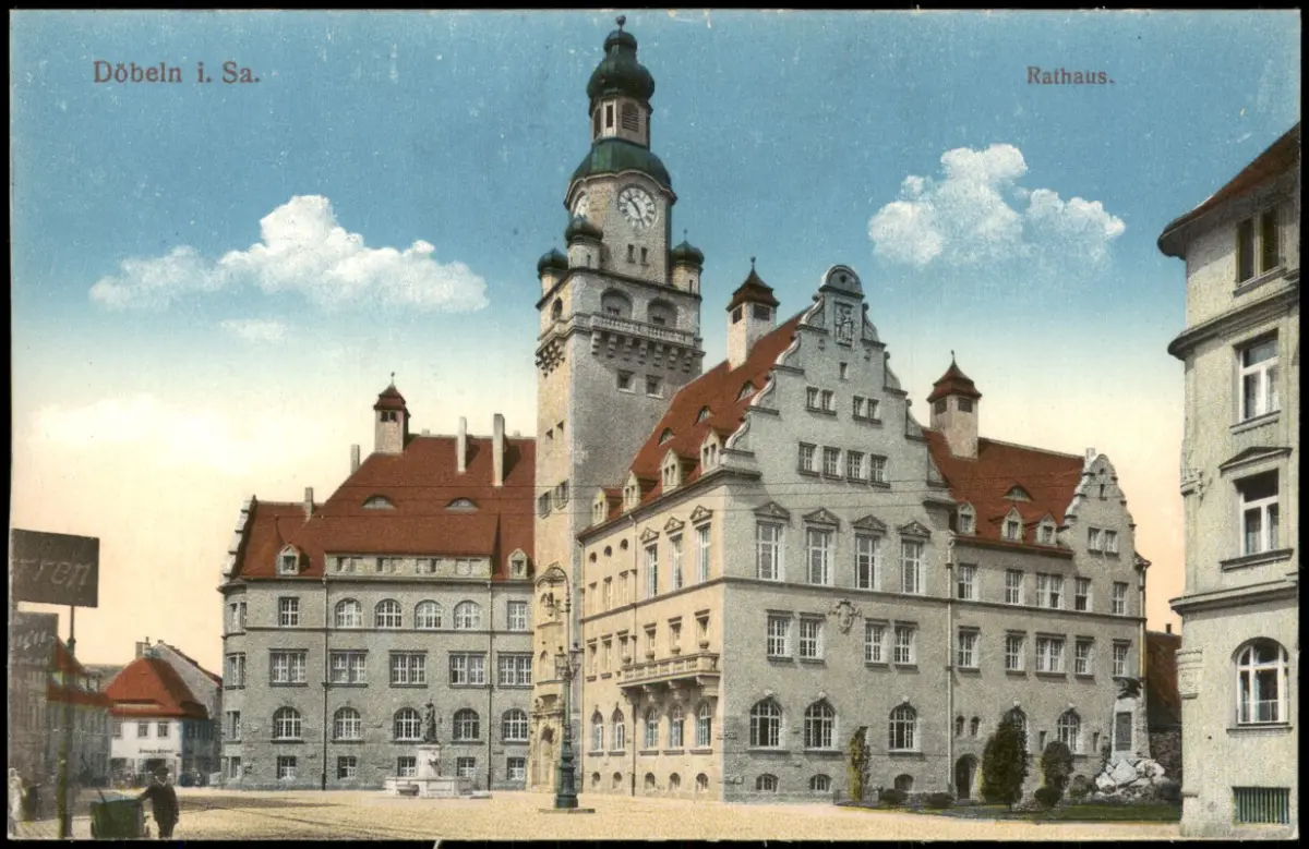 Ansichtskarte Döbeln Partie am Rathaus 1914