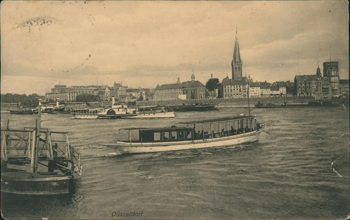 Ansichtskarte Düsseldorf Rheinpartie Rhein Schiffe Dampfer 1908
