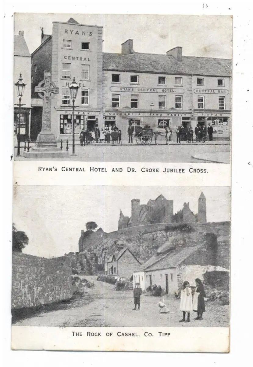 Titel: EIRE / IRLAND - TIPPERARY - CASHEL, Ryan's Central Hotel & Dr. Croke Jubilee Cross, The Rock of Cashel