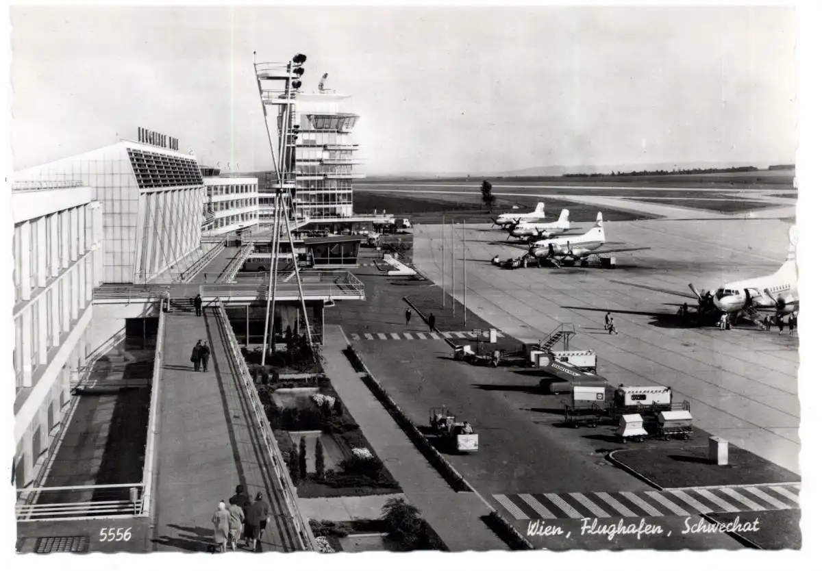 [Ansichtskarte] FLUGHAFEN / AIRPORT - WIEN - SCHECHAT, Propellermaschinen, 60er Jahre.