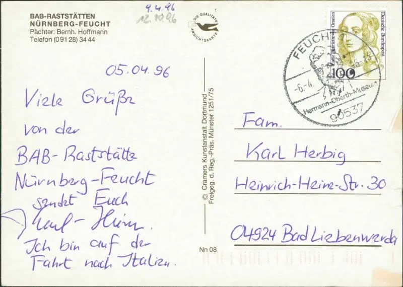 Ansichtskarte Feucht Luftbild und BAB-Raststätten g1996