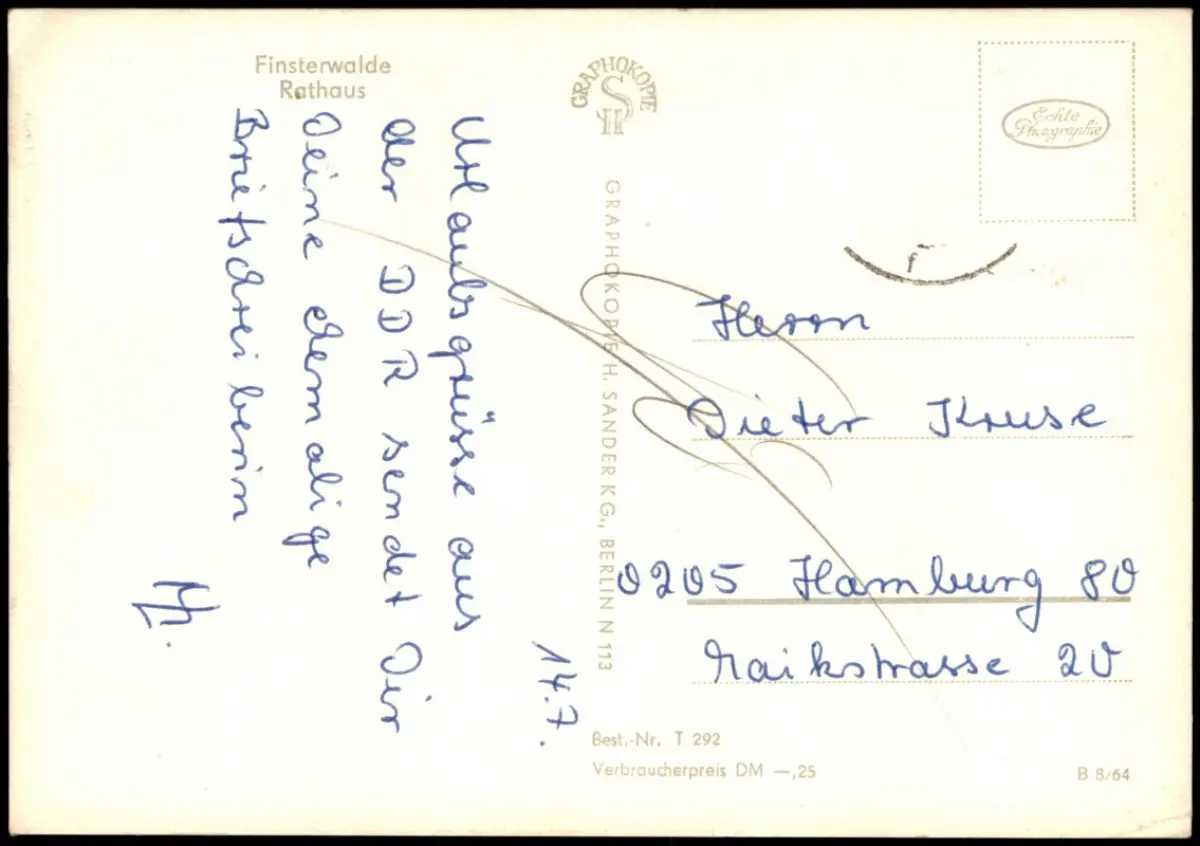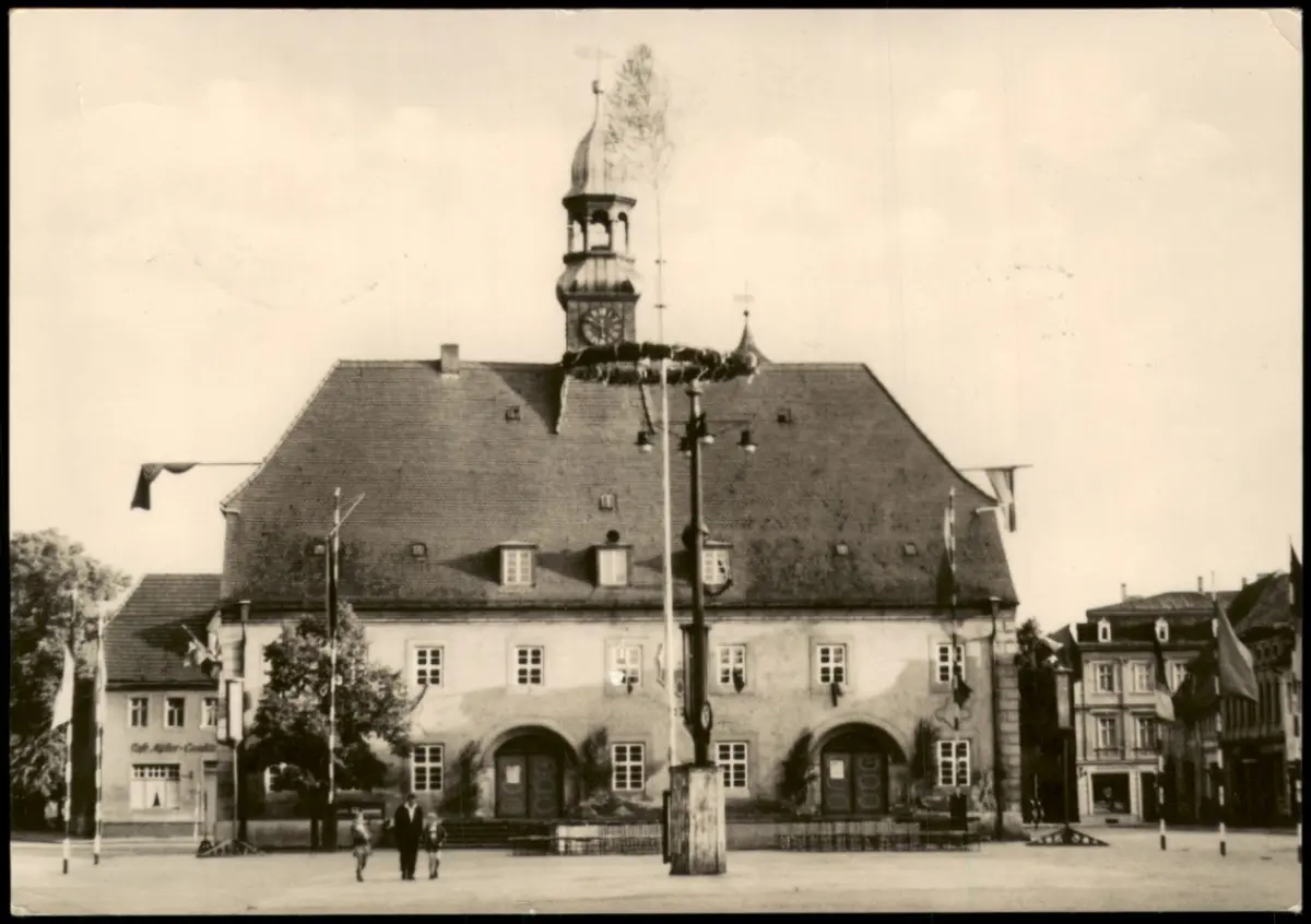 Ansichtskarte Finsterwalde Grabin Rathaus Fahnen 1964