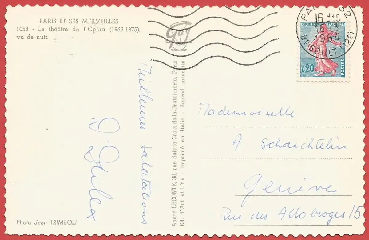 Motiv: Théâtre de l'Opéra. Verlagsangaben: Guy, 1964, 1058.