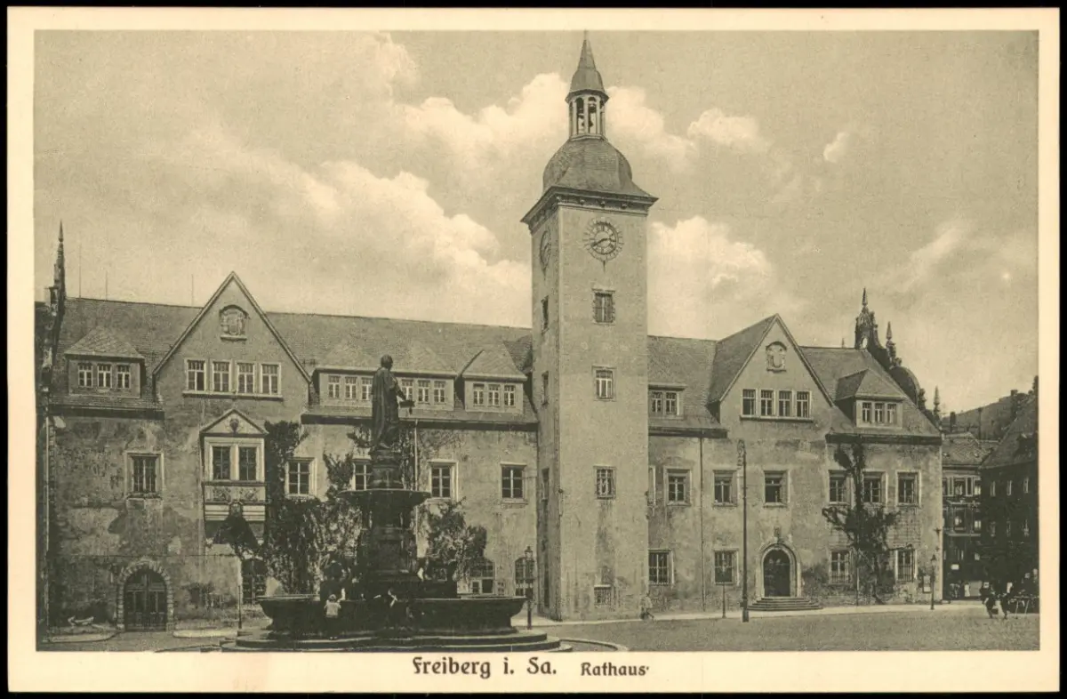 Ansichtskarte Freiberg (Sachsen) Rathaus und Brunnen 1926