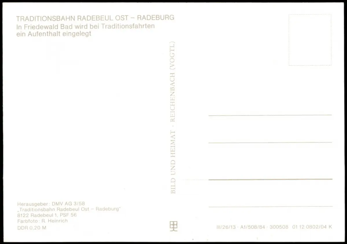 Ansichtskarte Friedewald-Moritzburg Traditionsbahn Radebeul Ost-Radeburg 1984