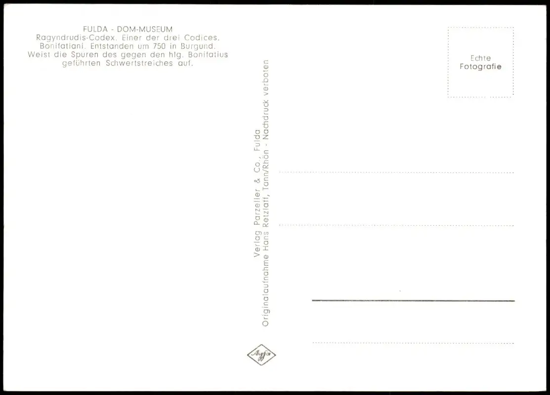 Ansichtskarte Fulda Ragyndrudis-Codex Motivkarte Dom-Museum 1960