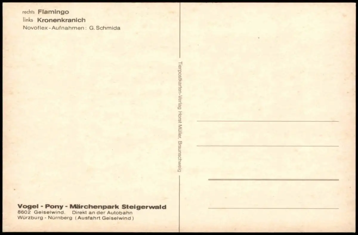 Ansichtskarte Geiselwind Freizeit-Land Geiselwind Kronenkranich Flamingo 1978