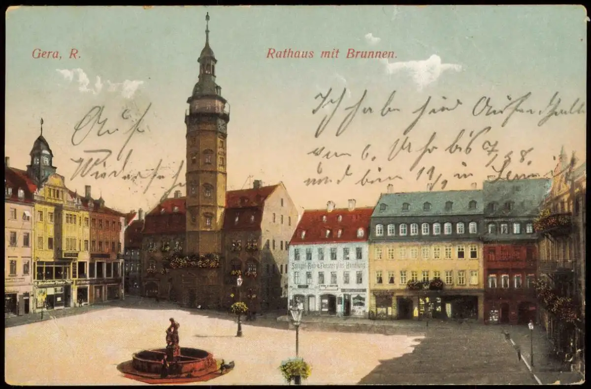 Ansichtskarte Gera Markt Rathaus Brunnen 1914