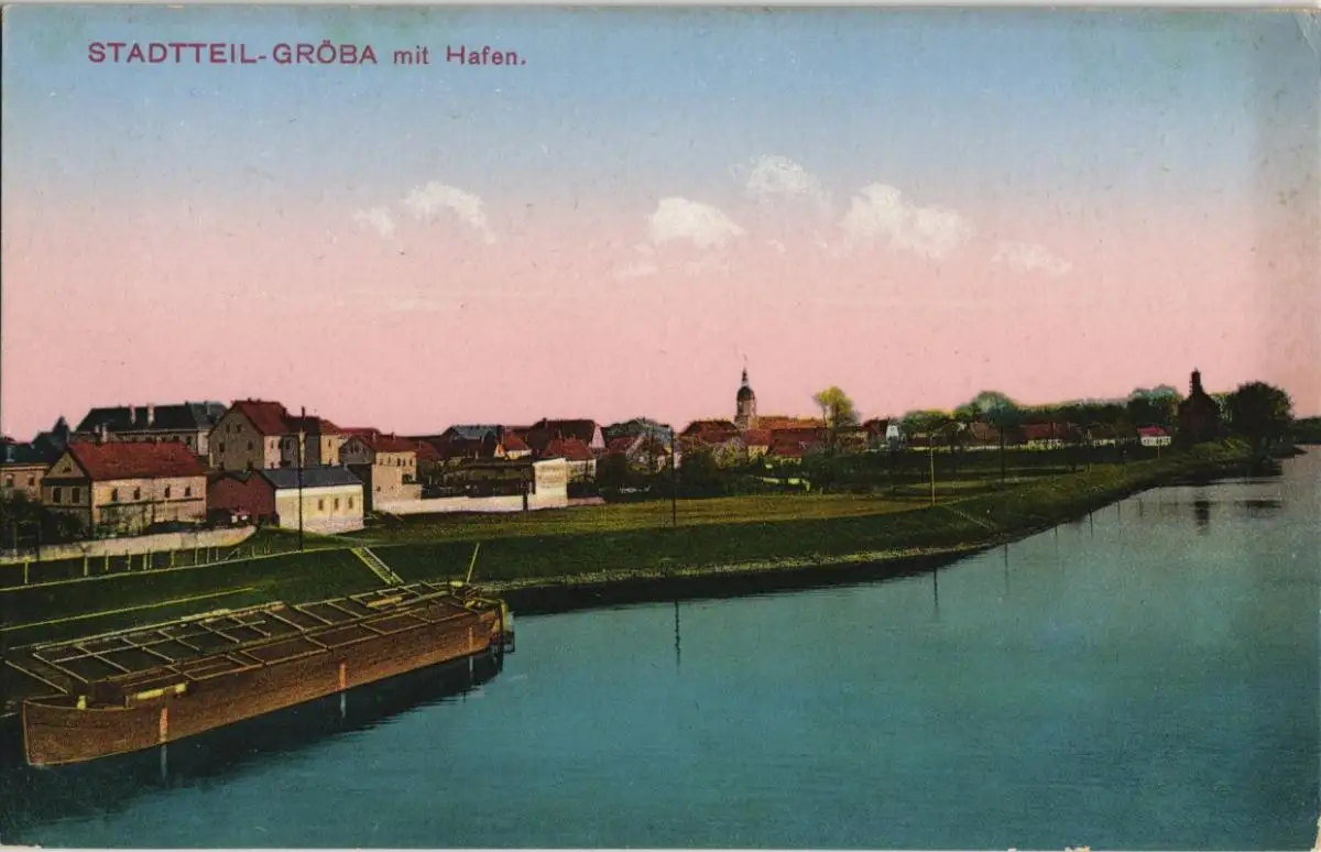 Ansichtskarte Gröba-Riesa mit Hafen 1914