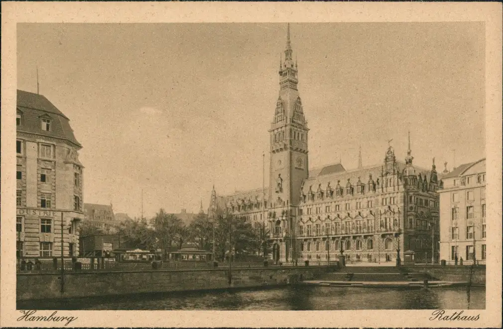 Ansichtskarte Hamburg Rathaus, Geschäfte 1922