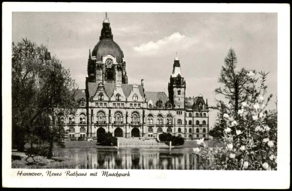 Ansichtskarte Hannover Neues Rathaus mit Maschpark 1955