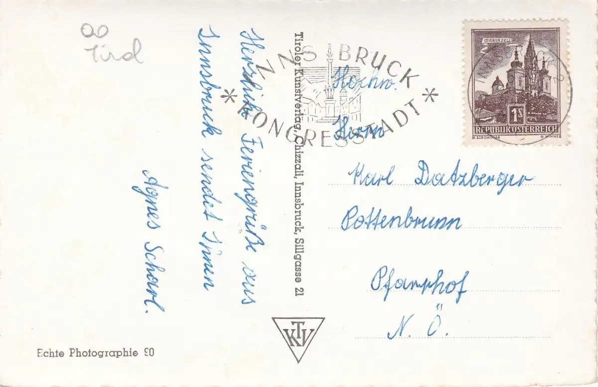 Verlagsangaben: Innsbruck, Sillgasse 21, Tiroler Kunstverlag, Chizzali, 90.