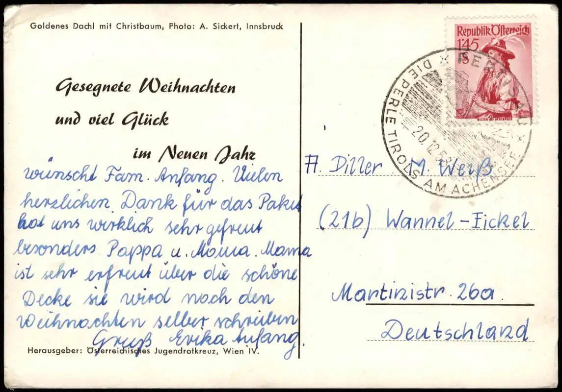 Ansichtskarte Innsbruck Goldenes Dachl mit Christbaum 1958