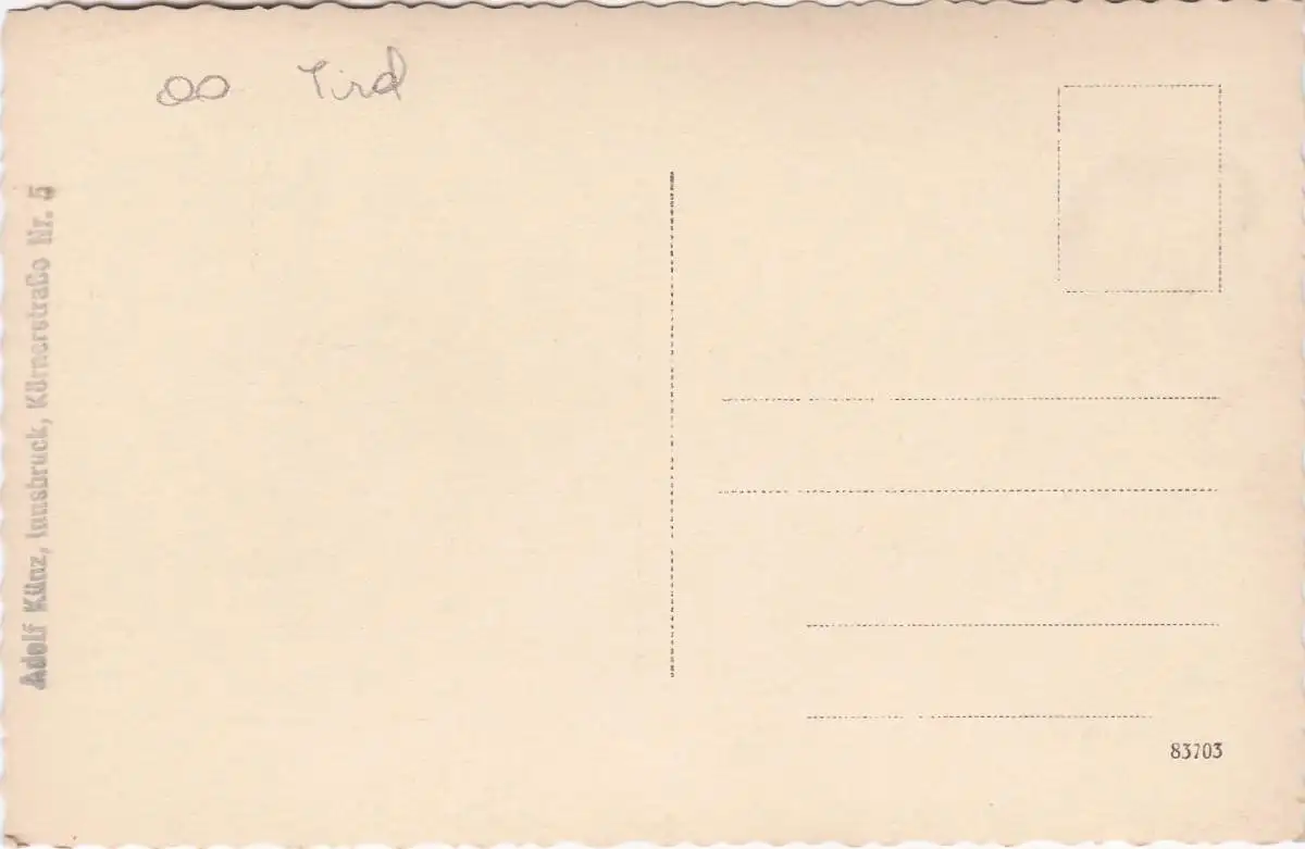 Verlagsangaben: Innsbruck Körnerstrasse Nr 5, Adolf Künz, 83703.