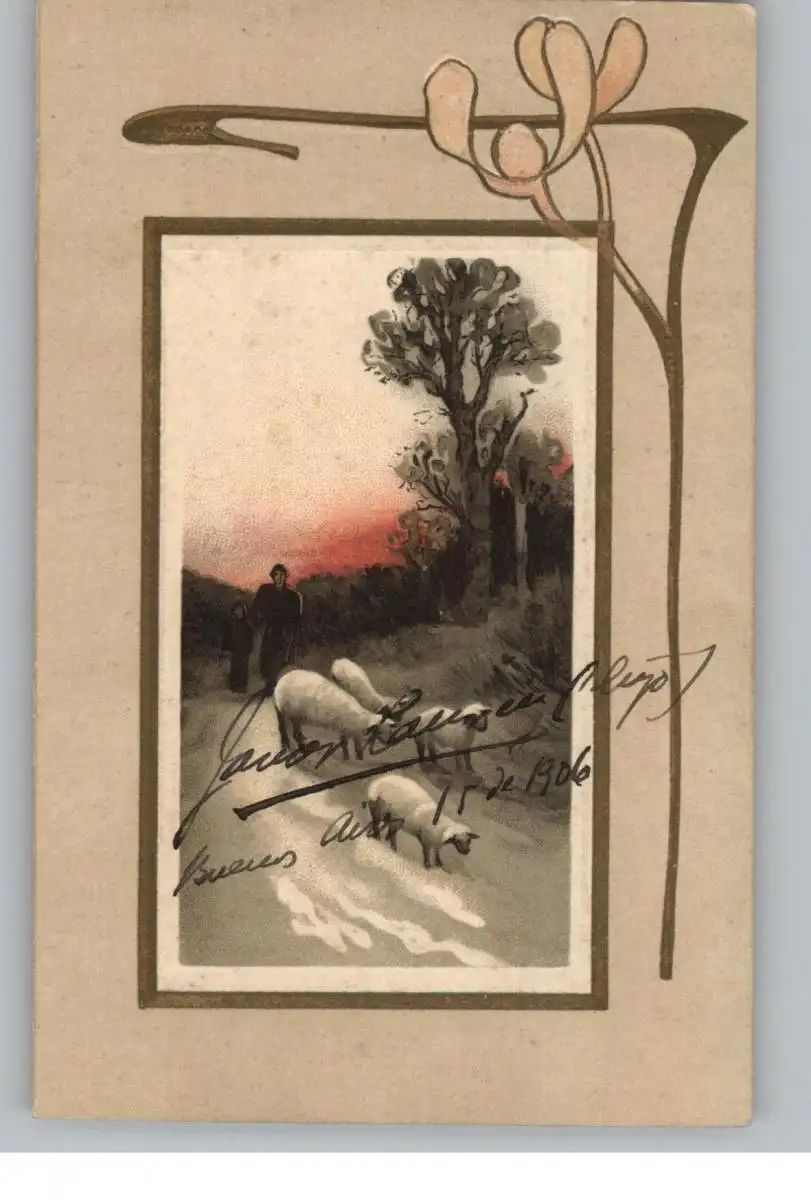 [Ansichtskarte] JUGENDSTIL / ART NOUVEAU - klassische Ornamentik im geprägten Golddruck, 1906.