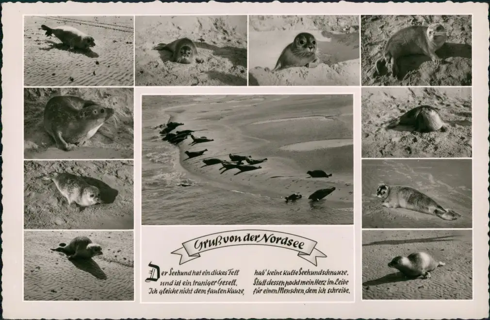 Ansichtskarte Juist MB: Robben am Strand 1962