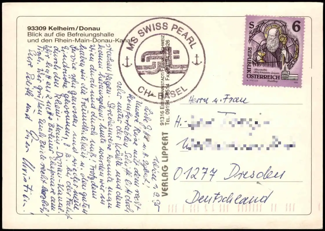 Ansichtskarte Kelheim Befreiungshalle Motorschiff Swiss Pearl CH-Basel 1995