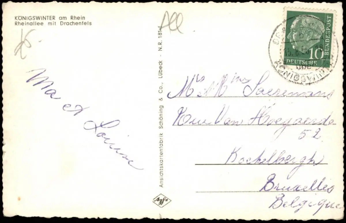 Ansichtskarte Königswinter Rheinallee mit Drachenfels 1956