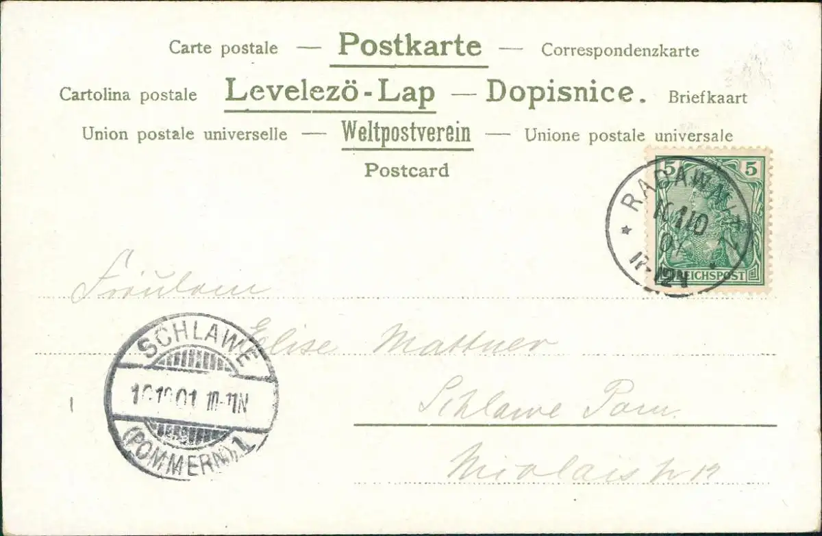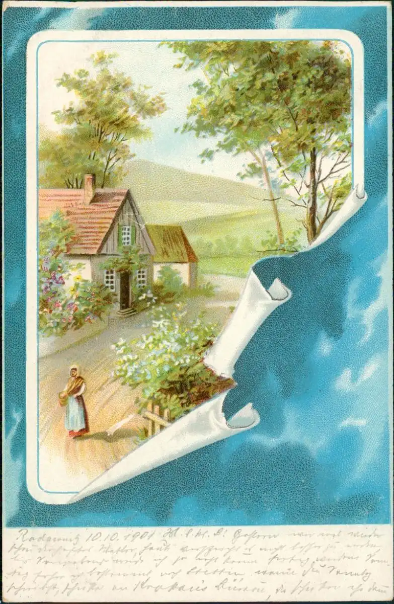 Ansichtskarte Künstlerkarte Dorfpartie 1901 gel Radawnitz Schlawe