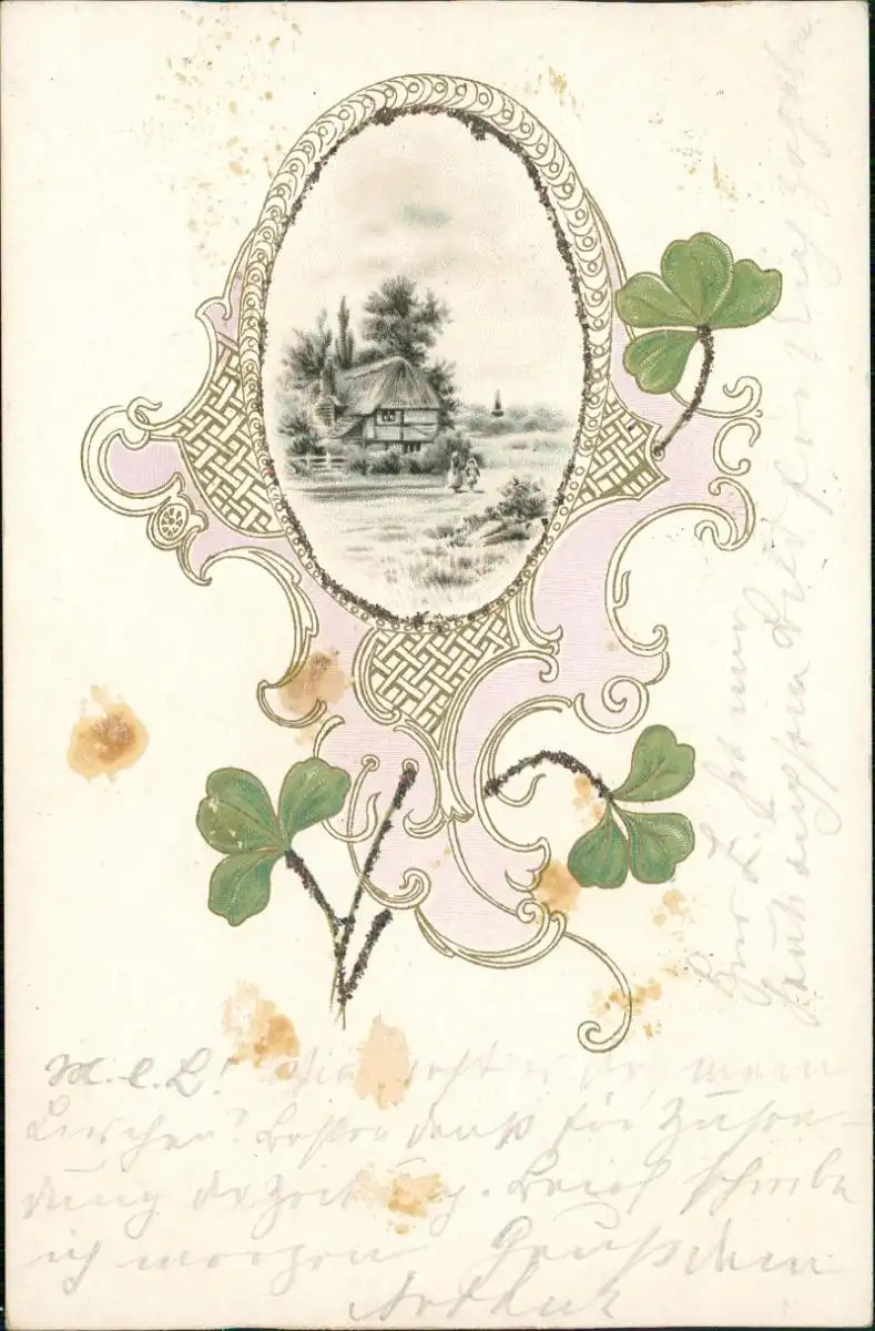 Ansichtskarte Künstlerkarte Landschaft umrahmt von Gold - Ornament 1901