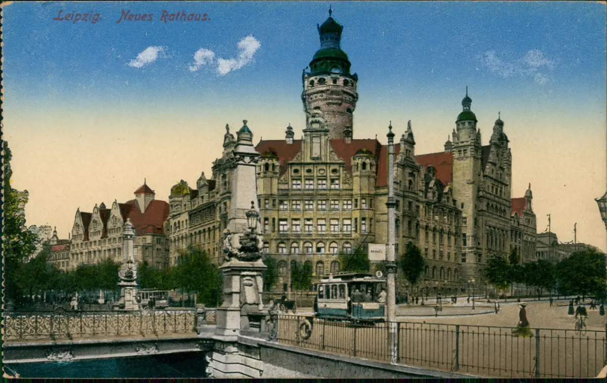 Ansichtskarte Leipzig Neues Rathaus Straßenbahn Tram 1914