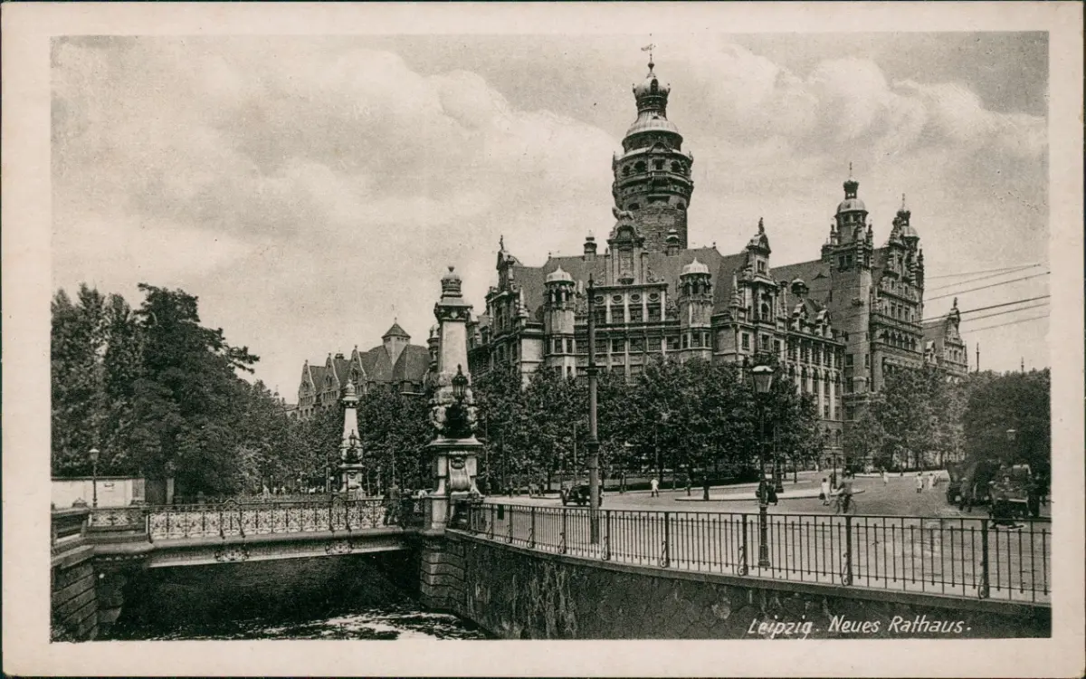 Ansichtskarte Leipzig Straßenpartie am Neuen Rathaus 1953