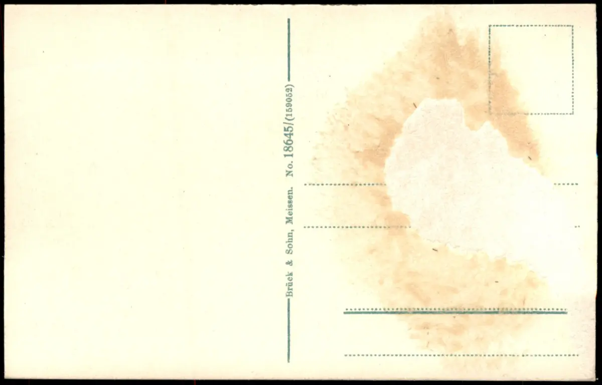 auf der Rückseite Kleberückstände und abgerissenes Papier