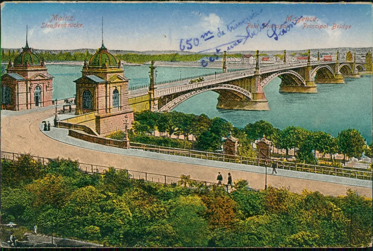 Ansichtskarte Mainz Rheinbrücke Straßenbrücke Rhein 1924