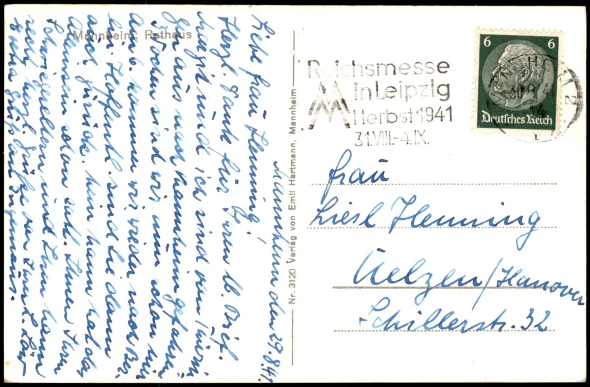 Ansichtskarte Mannheim Partie am Rathaus 1938