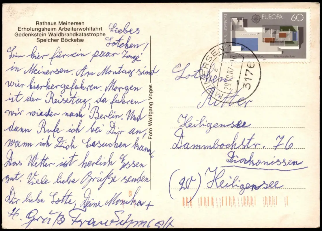 Ansichtskarte Meinersen Rathaus, Gedenkstein, Erholungsheim 1987