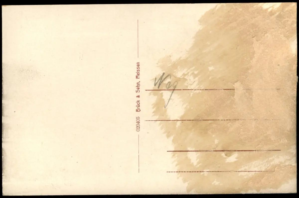 auf der Rückseite Kleberückstände und abgerissenes Papier