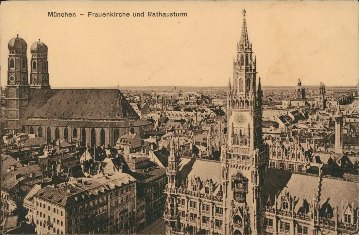 Ansichtskarte München Frauenkirche, Rathausturm und Stadt 1920