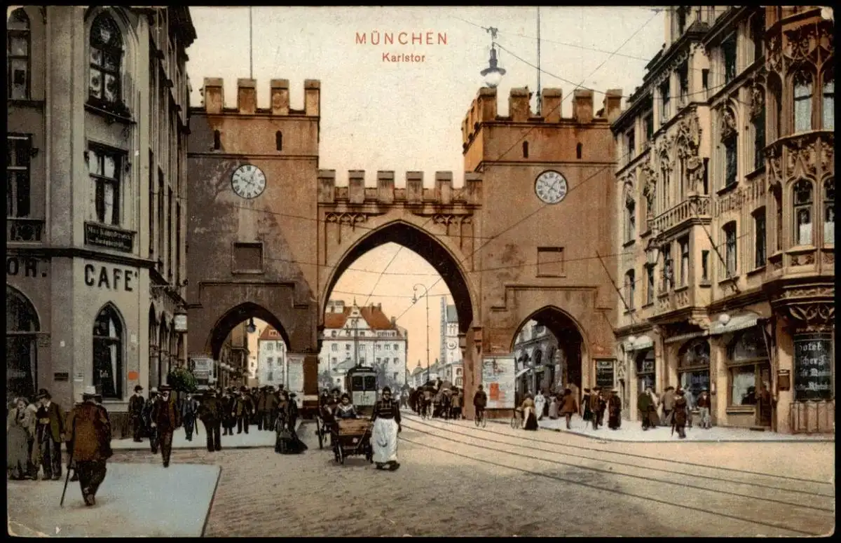 Ansichtskarte München Karlstor Cafe Straßenbahn 1910