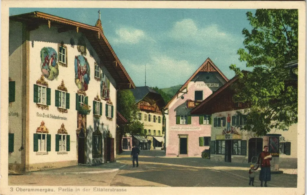 Ansichtskarte Oberammergau Partie in der Ettalerstrasse 1930