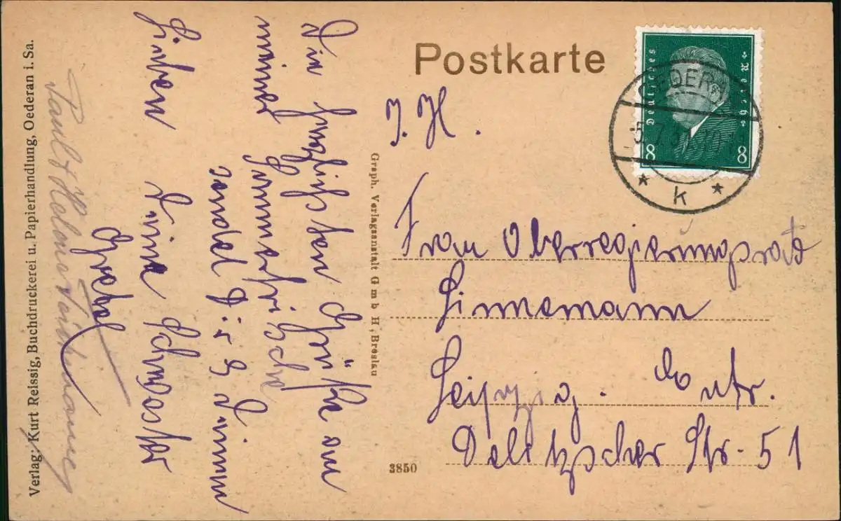 Ansichtskarte Oederan Post-Straße mit Post 1910