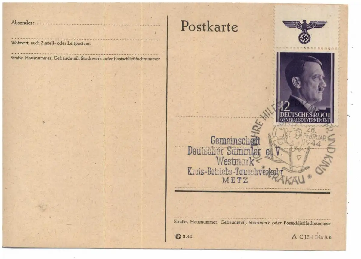 [Ansichtskarte] PL 30-001 KRAKAU / KRAKOW, Postgeschichte, Sonderstempel "10 Jahre Hilfswerk Mutter und Kind", 1944.