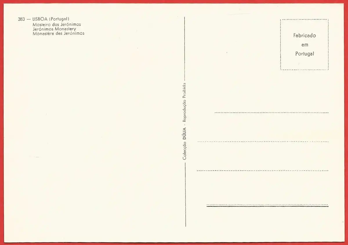 Motiv: Portugal - Lisbonne : Monastère des Jéronimos. Verlagsangaben: Dulia /, 383.
