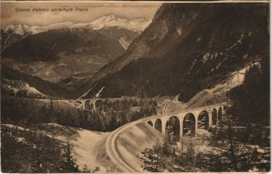 Ansichtskarte Preda-Bergün/Bravuogn Viadukt - Große Kehren 1910