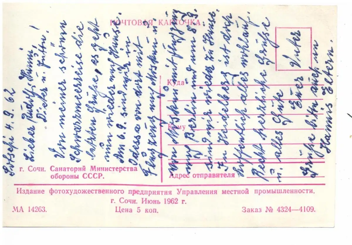 [Ansichtskarte] RU 354000 SOTSCHI, Sanatorium, 1962.