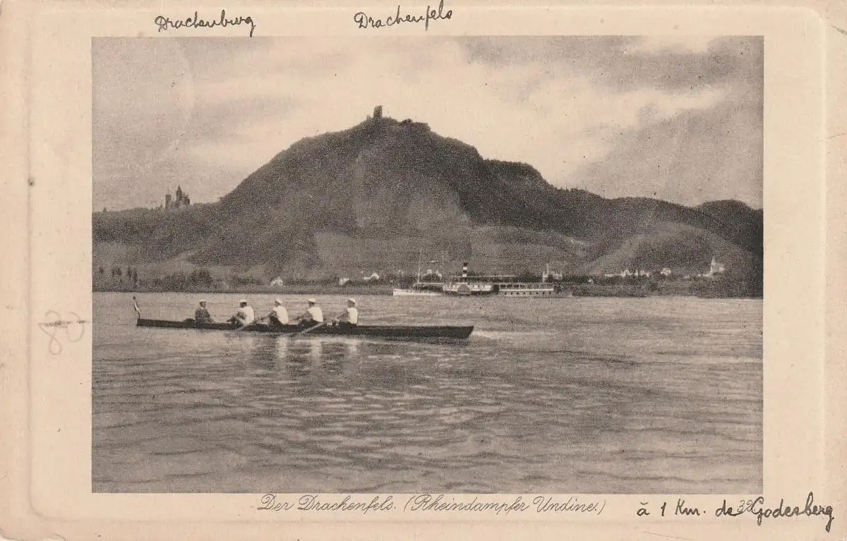 [Ansichtskarte] RUDERN / Rowing vor Königswinter, im Hintergrund Rheindampfer Undine, 1911, Verlag Carl Richarz.
